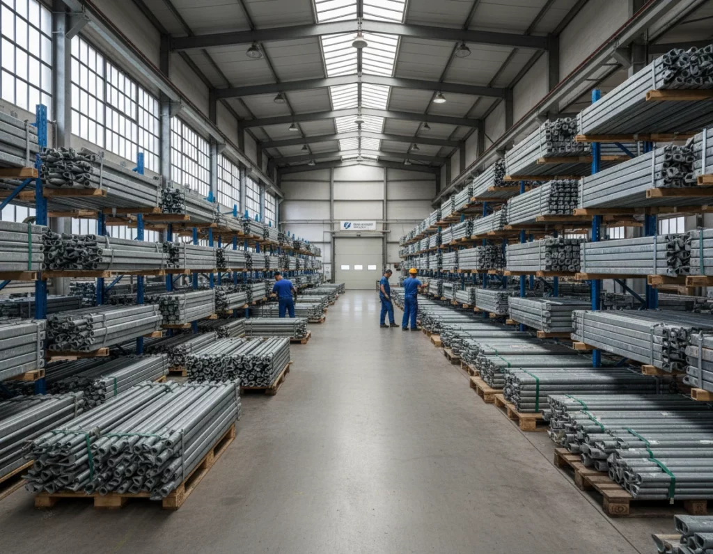 Un échafaudage roulant standard nécessite environ 2 à 3 m² au sol. Pour une entreprise avec 3 à 5 structures, prévoyez un espace couvert d’au moins 15 m² avec une hauteur sous plafond de 2,50 m minimum. Le stockage extérieur reste possible mais accélère la corrosion et l’usure du matériel.